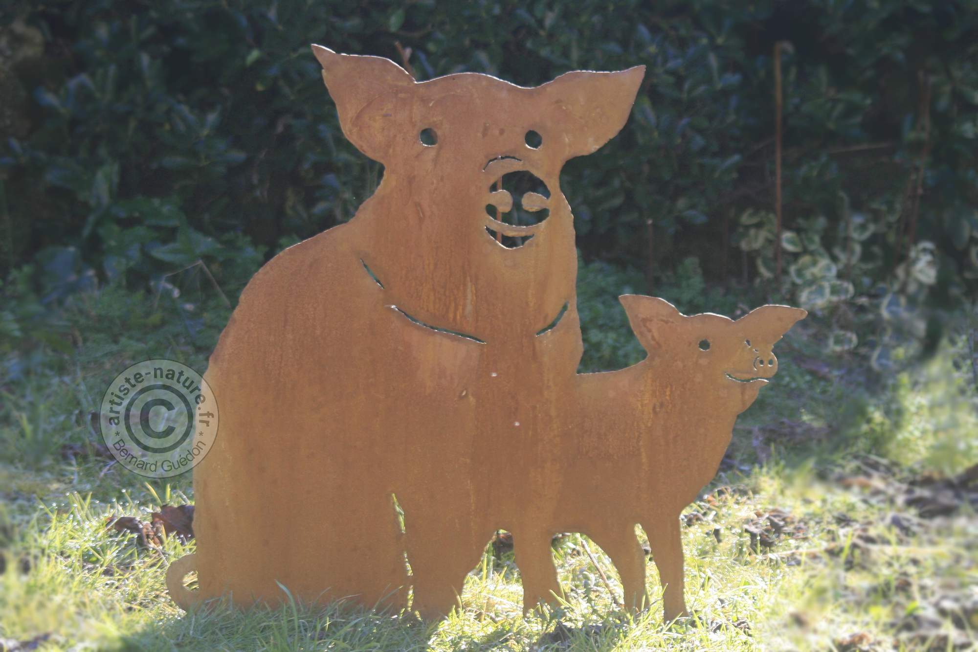 Finition de la découpe: Que ce soit en acier peint , en acier brut rouillé ciré ou en acier corten ; la fabrication en découpe plasma à main levée ou aux cisailles est réalisée en suivant le dessin que je trace préalablement au crayon ou à la craie sur la plaque d'acier brut , il peut de ce fait y avoir de légères différences de découpe avec la photo présentée ci-dessus .