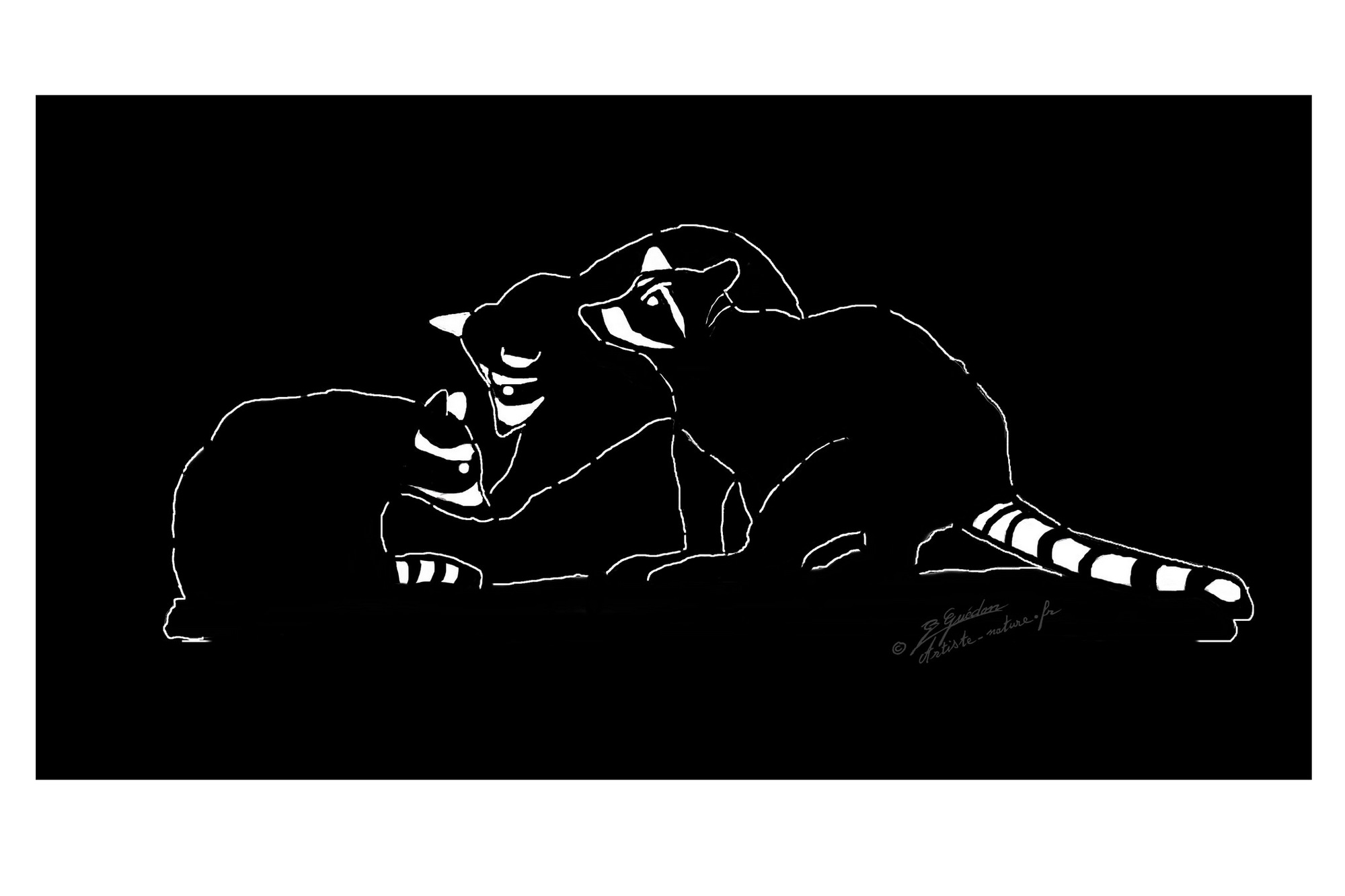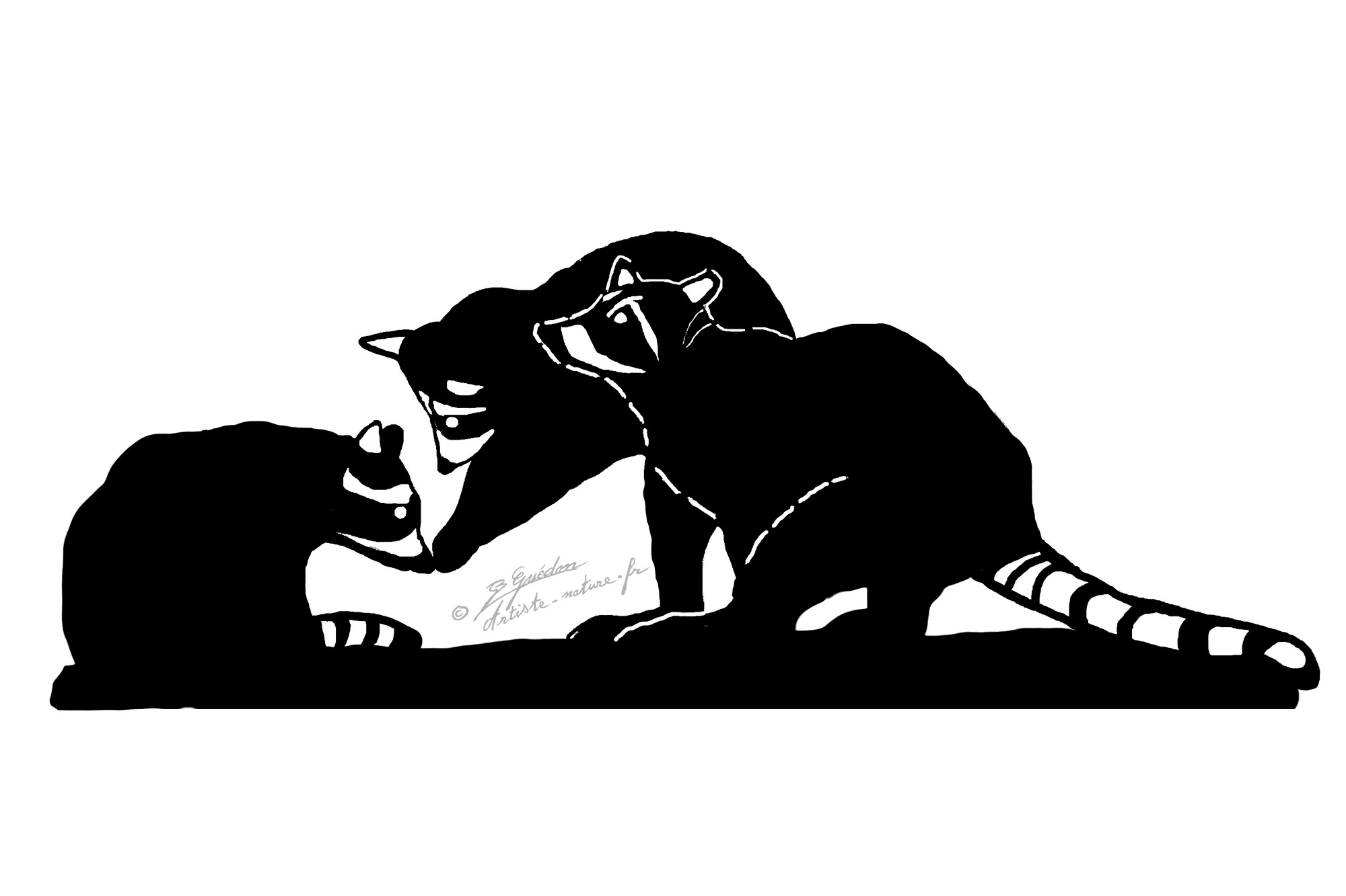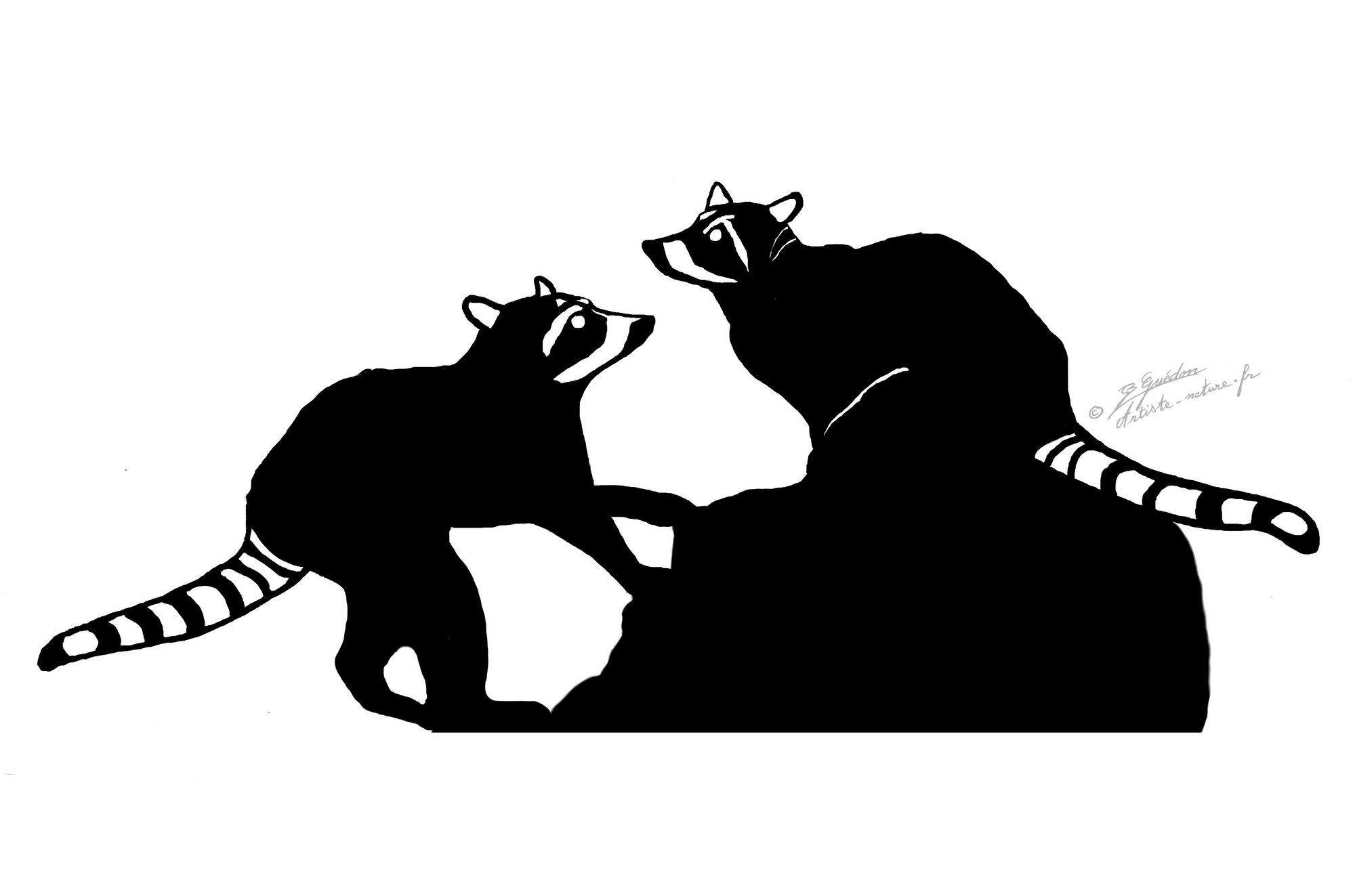 Janvier 2022 , voici ma nouvelle page de futurs décor Raton laveur découpés à la main en métal, zinc ou acier de 0,8mm à 2mm.Création artiste-nature ( Bernard Guédon).